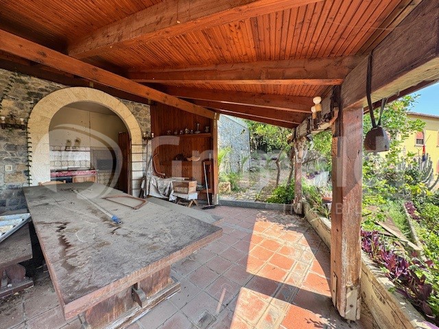 Giardino di circa 300 mq con alberi da frutta e agrumi, ampia cucina attrezzata estiva con forno a legna. Due ampi garage e parcheggio esterni per 4 auto. La villa si trova in una zona senza uscita, ristoranti, spiaggie, negozi, sono a 300 metri dalla villa.