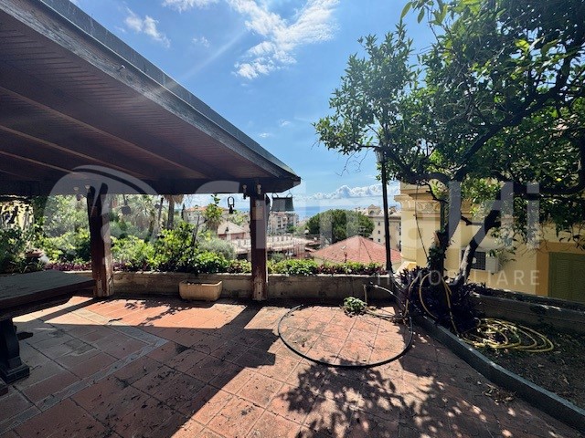 ALASSIO: a 300 metri dal mare, in zona tranquilla e riservata, vicino al mare, la Grimaldi di Borgaretto propone in vendita la parte superiore di una villa di circa 300 mq, con vista panoramica sul mare. l'immobile e' disposto su due piani ed e' composto da un ingresso con accesso ad un ampio balcone, un triplo salone, cucina abitabile, 4 camere da letto, 4 bagni, camino ed ampio terrazzo.