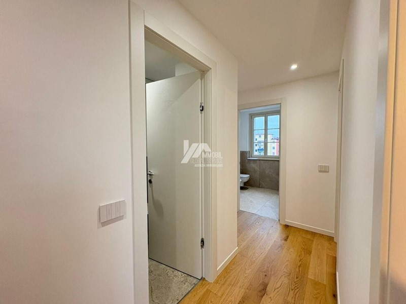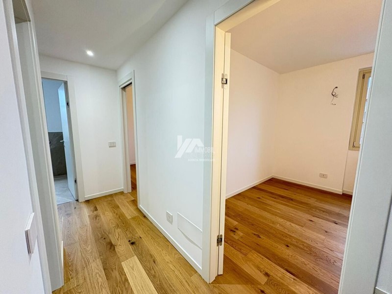 Dettagli di pregio: Elegante parquet in rovere (15 x 160/180) in tutta la casa, finiture in gres nei servizi, porte interne in laminato bianco con cerniere a scomparsa, soglie e davanzali in marmo.