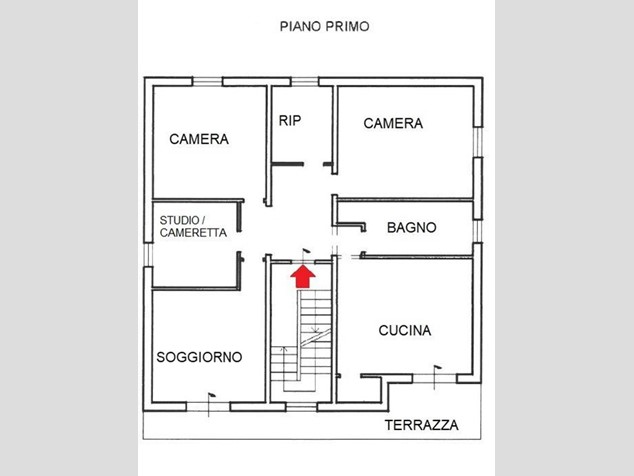 L'immobile si presenta in buono stato di manutenzione ed è composto da ampio ingresso, soggiorno, cucina abitabile con ripostiglio-dispensa, terrazzo sul quale si affacciano sia la cucina che il soggiorno, due grandi camere matrimoniali, una camera doppia, uno studio e il bagno finestrato con vasca e doccia.