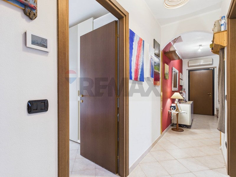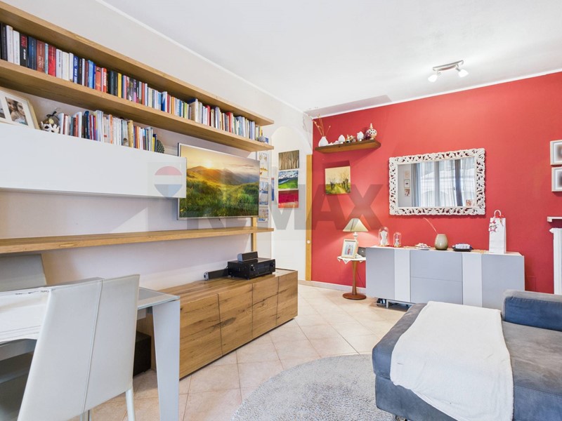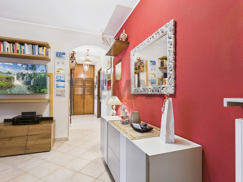 L'ingresso si apre su un ampio e luminoso soggiorno con affaccio sul terrazzo loggiato.