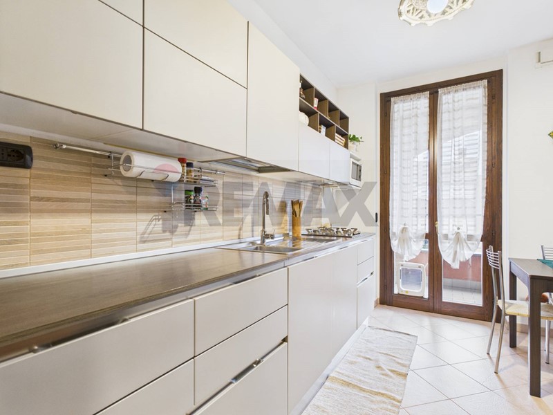 Cucina abitabile, separata dal soggiorno è anch'essa con balcone.