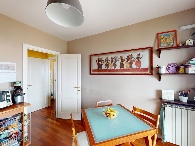 La soluzione, in ottime condizioni interne, è composta da ingresso living su zona giorno, cucina abitabile, due camere, ripostiglio e doppi servizi.