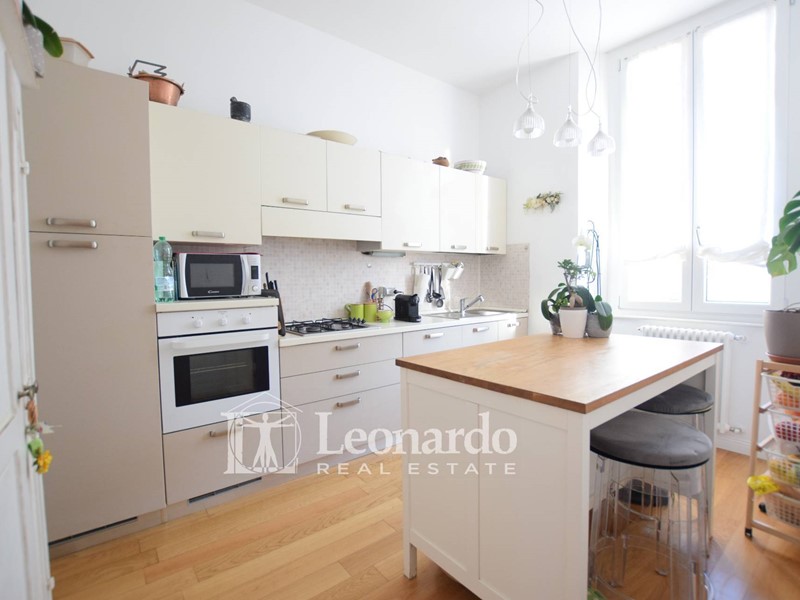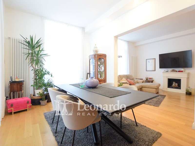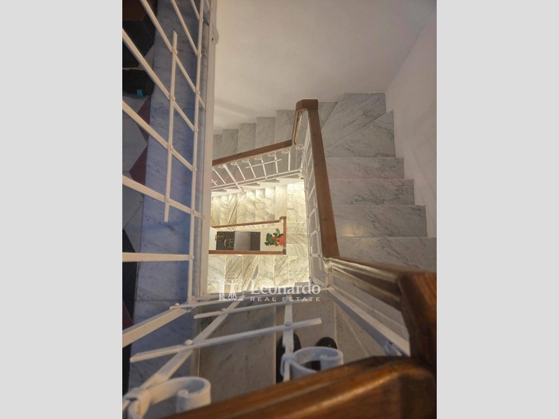 L'accesso all'appartamento avviene tramite una corte spaziosa, ideale per mangiare all'aperto ma molto utile per posti bici e scooter. Una volta raggiunto il portone d'ingresso indipendente, una suggestiva scala in marmo originale dell'epoca, che conferisce anche un tocco di eleganza senza tempo, arriviamo al primo piano.