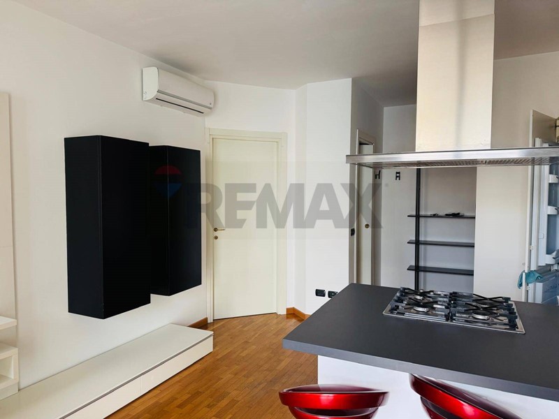 In Via Cassinari, Quartiere Santa Giulia, elegante bilocale al penultimo piano composto da sala con cucina a vista, camera matrimoniale, antibagno/lavanderia, ripostiglio e bagno finestrato con vasca/doccia. Il terrazzo è affacciato sulla Promenade pedonale, al primo piano interrato si trova il Box con metratura più ampia rispetto ad un box singolo; di pertinenza anche una cantina. L'appartamento è completamente arredato e completo di aria condizionata.