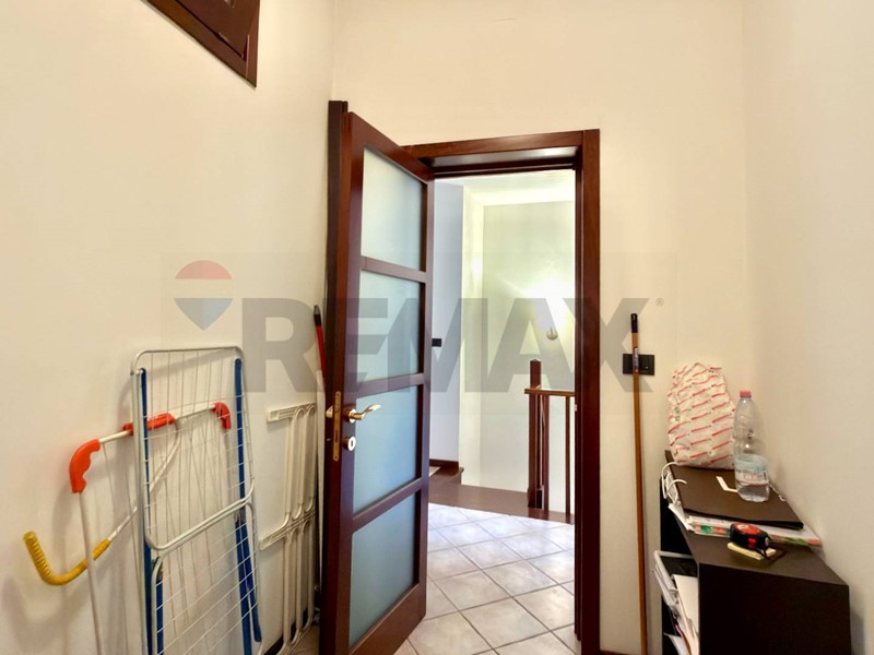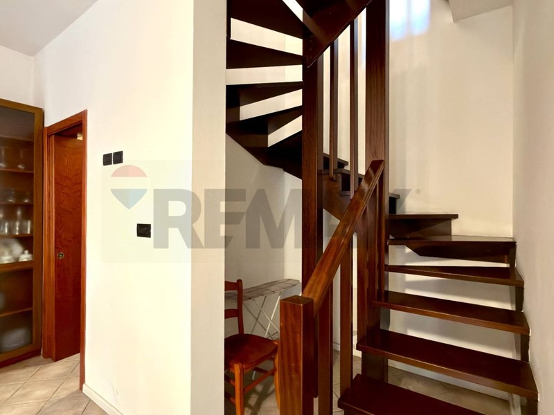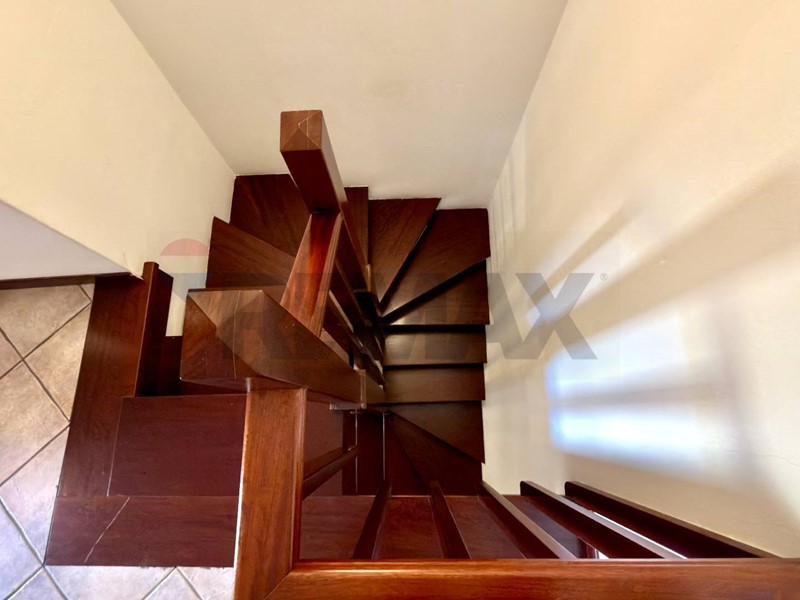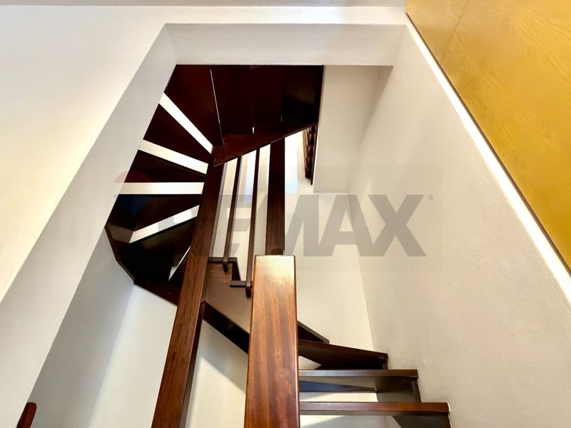Lingresso si sviluppa al piano terra, dove troviamo un accogliente soggiorno, una cucina abitabile funzionale e ben organizzata, un primo bagno di ampie dimensioni completamente piastrellato, una comoda dispensa e un ulteriore spazio sfruttabile ricavato sotto la splendida scala in legno lucido, elemento di pregio che dona carattere e continuità agli ambienti.