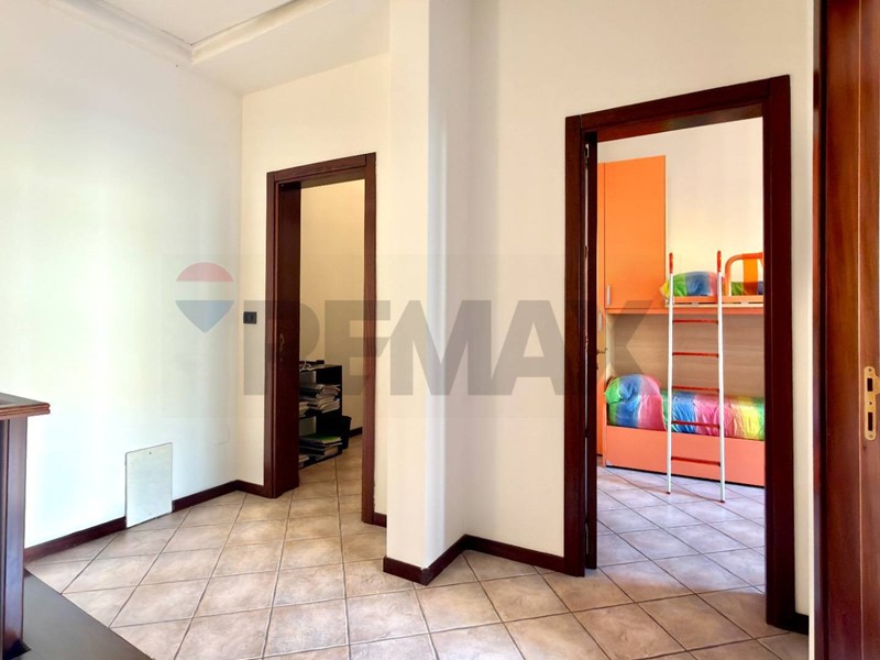 La zona notte, ben separata e raggiungibile tramite la scala interna, è composta da una camera matrimoniale con cabina armadio, una camera singola luminosa e ben proporzionata e un ulteriore stanza attualmente adibita come studio, facilmente personalizzabile secondo le proprie esigenze. Completa il piano un secondo bagno con vasca, dotato di accesso diretto al balcone, che assicura luce naturale e ottima aerazione.