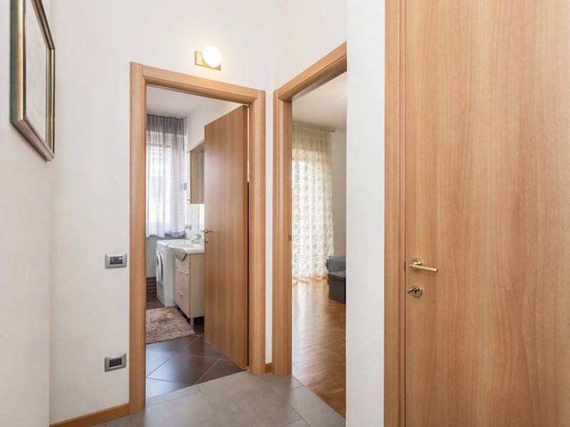 La soluzione si trova al terzo piano di palazzina dotata di ascensore e si compone di: ampia e luminosa zona giorno con angolo cottura a vista, disimpegno/ripostiglio, bagno finestrato con box doccia e lavatrice, camera matrimoniale. Due balconi. Tapparelle elettriche. Completano la proprietà un box auto singolo e una cantina.