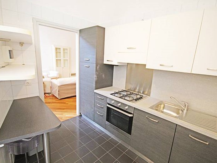 L'immobile è dotato di riscaldamento autonomo e pavimentazioni in parquet, viene locato completo dell'arredo di cucina con lavastoviglie, arredo soggiorno, arredo di 2 camere da letto ed arredo della terza camera da letto adibito a studio.