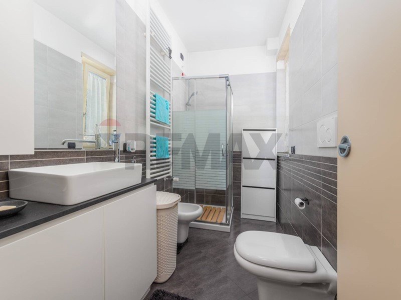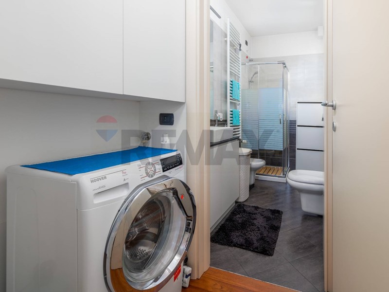 L'immobile si presenta in perfette condizioni, dettate dalla recente costruzione e da una manutenzione costante, parquet teck massello di medie dimensioni in tutta la casa ad eccezione de bagno dov'è stato posato un funzionate gress porcellanato in posa diagonale, portoncino blindato ed infissi in legno doppio vetro a taglio termico. l' impiantistica elettro idraulica è a norma mentre l'impianto di climatizzazione è installato sia nella zona giorno che nella zona notte oltre ad impianto anti intrusione e tapparelle motorizzate. Sul terrazzo sono state installate 3 tende da sole ad avvolgimento automatico. IL riscaldamento è centralizzato a gestione autonoma e sezionato per ambienti; ampia autorimessa al piano interrato ad 22.000 e vano cantina. Classe energetica B epi 56,68 l'immobile viene venduto parzialmente arredato. Libero a breve