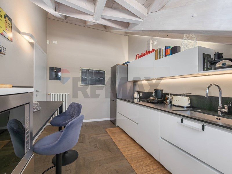 Zona Giorno : il soggiorno accoglie con unatmosfera calda e raccolta, valorizzata dalle geometrie della mansarda. La cucina è separata, funzionale e ben organizzata, ideale per chi desidera mantenere distinti gli spazi della vita quotidiana.