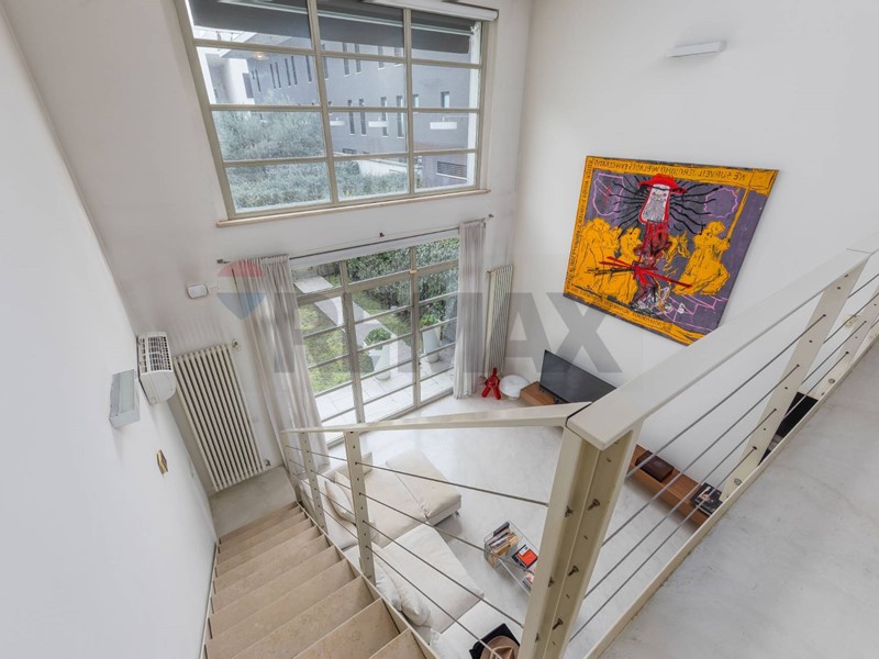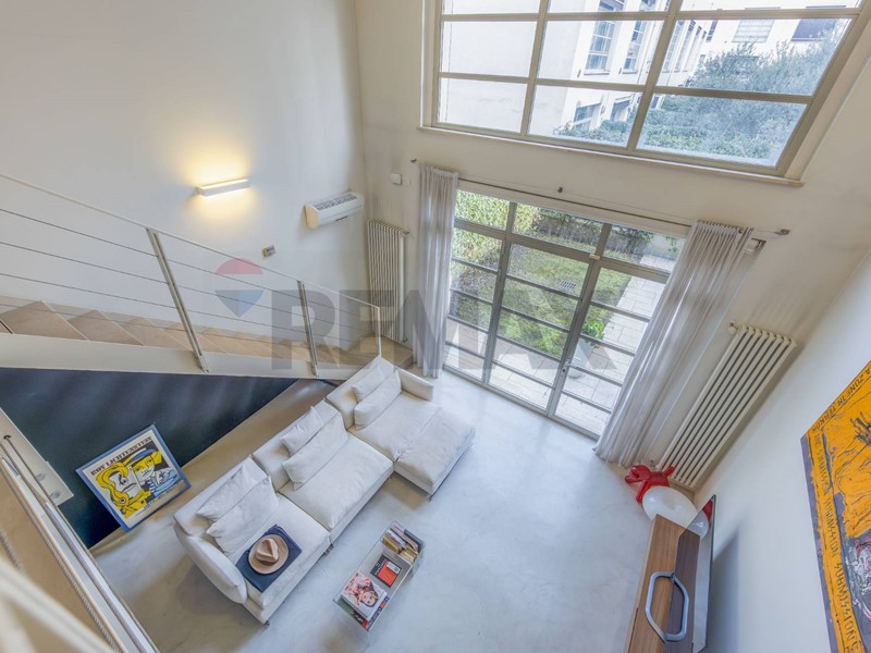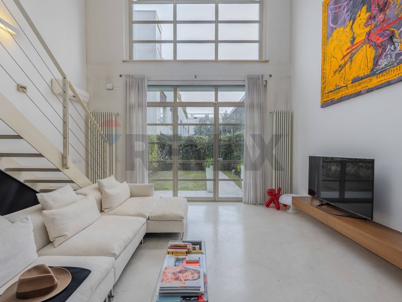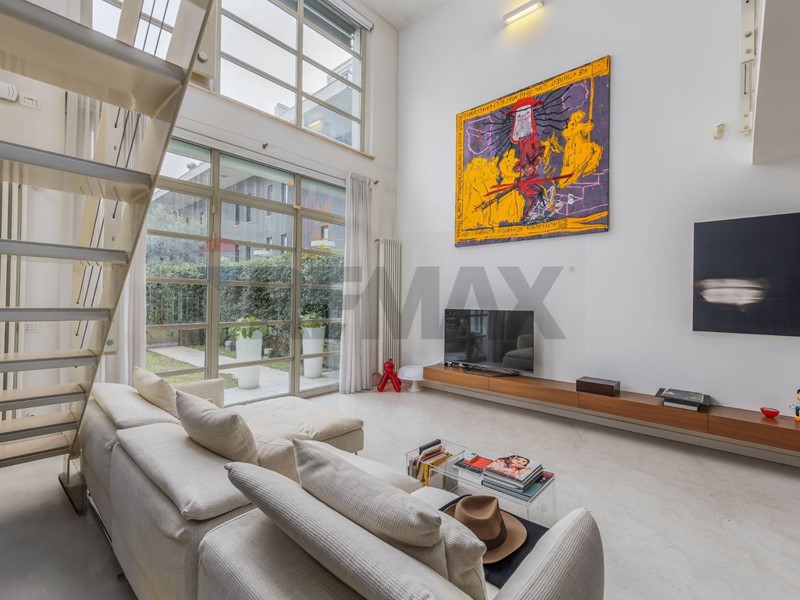 Limmobile : elegante Loft di charme situato al piano terra di ca. 90 mq. disposto su due livelli e doppia esposizione Est/Ovest, caratterizzato da ampie superfici vetrate e soffitti alti, che ne amplificano la percezione degli spazi, donando luce naturale, unatmosfera ariosa e continuità visiva tra interno ed esterno.