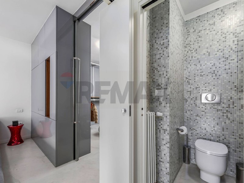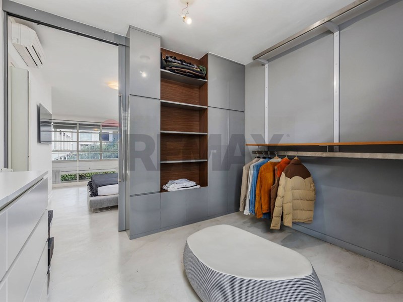 Reparto Notte : un soppalco ospita la camera padronale, uno spazio intimo e riservato che domina il living sottostante; una seconda stanza, attualmente adibita a cabina armadio, offre versatilità e comfort, affiancata da un ulteriore servizio igienico, pensato per garantire massima praticità.