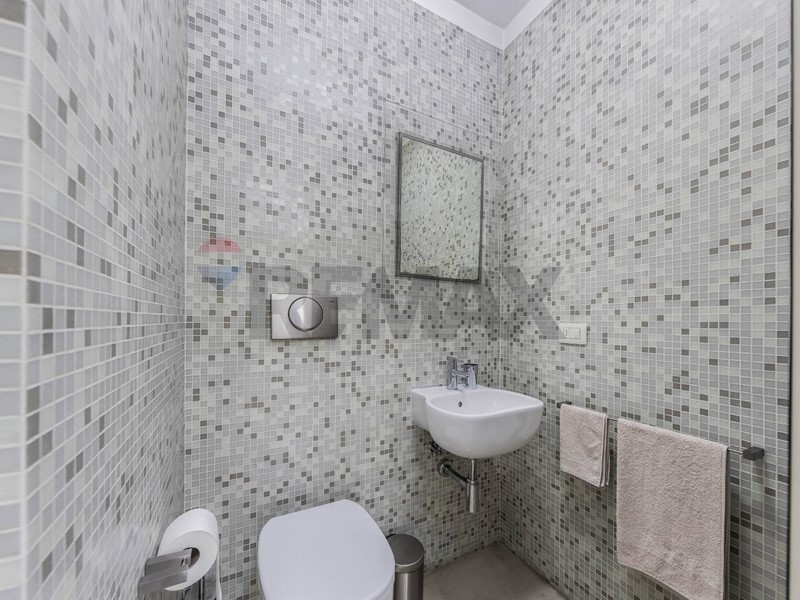 Caratteristiche/Finiture : un buonissimo stato conservativo ed elementi di pregio donano fascino a questa soluzione, che presenta pavimentazione in resina e ceramica nei bagni, serramenti in alluminio doppio vetro, tende da sole interne ed esterne elettriche, riscaldamento centralizzato con termostato, climatizzazione, allarme, impianto di irrigazione in giardino, video citofono e portoncino blindato. L'immobile presenta arredamento su misura.