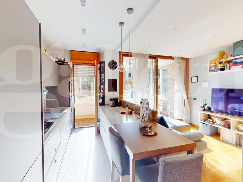 Il vero punto di forza è il terrazzo verandato con vetrate a libretto, uno spazio esterno vivibile che abbraccia l'intero appartamento. Grazie all'esposizione a SUD e agli affacci aperti sul verde, la casa gode di una luminosità naturale straordinaria per tutto l'arco della giornata.