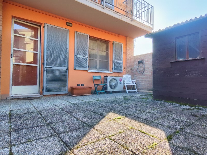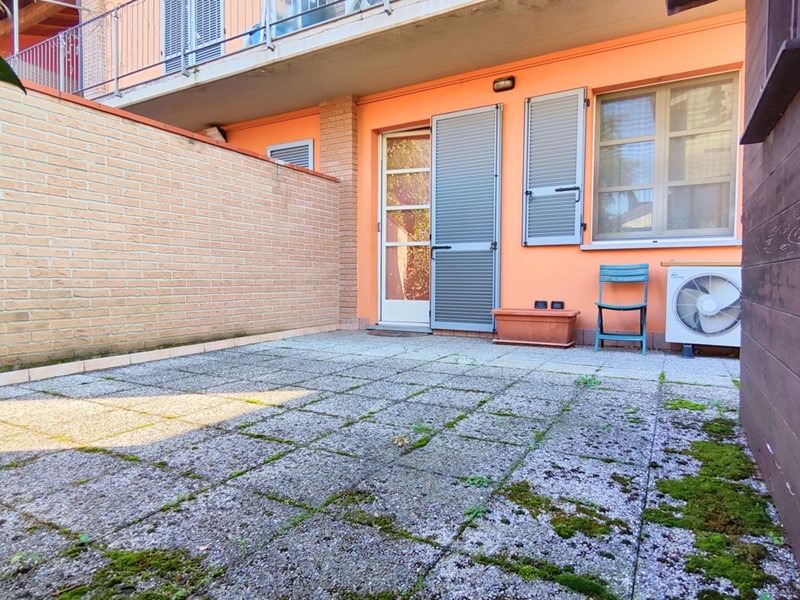 L' appartamento è composto da un soggiorno con cucina a vista, una camera matrimoniale con parquet e un bagno finestrato con box doccia e zona lavanderia. Dal fondo del corridoio, tramite porta finestra, si accede direttamente al cortile privato, uno spazio esterno ideale per momenti di relax o per pranzi all'aperto. L'abitazione è inoltre dotata di giardino, che aggiunge ulteriore privacy e offre un ambiente verde ideale per vivere all'aperto in totale tranquillità.