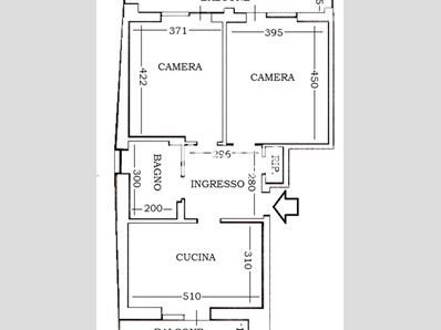 COMPOSIZIONE INTERNA: ingresso, cucina abitabile, due camere, servizio, ripostiglio, due ampi balconi, cantina al piano seminterrato;