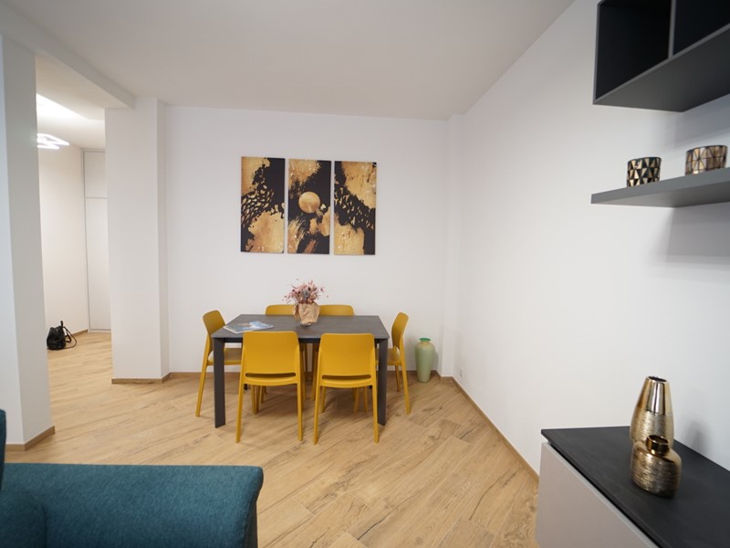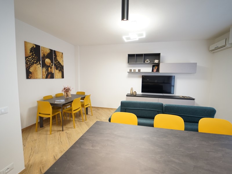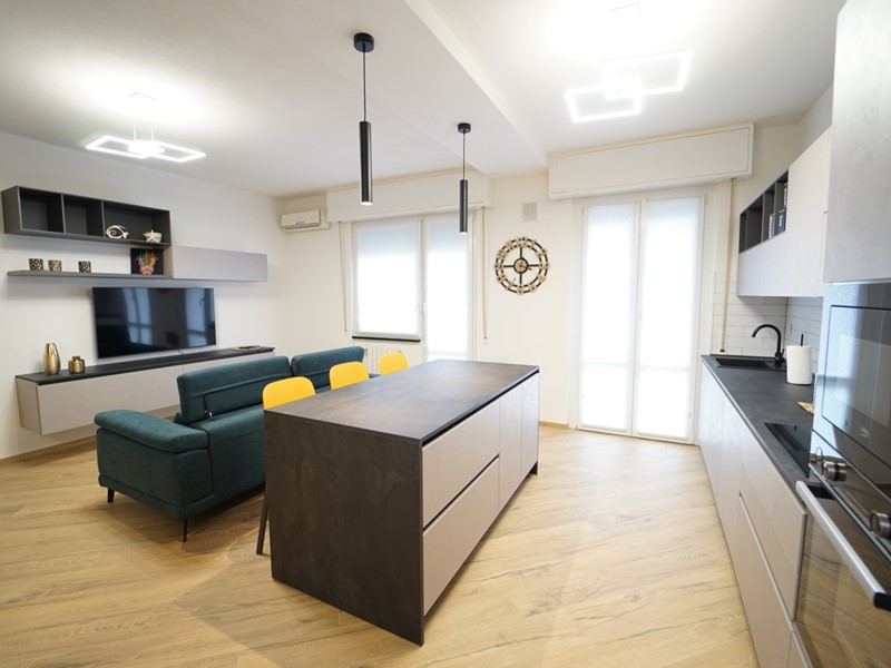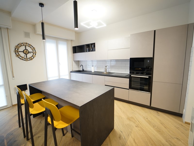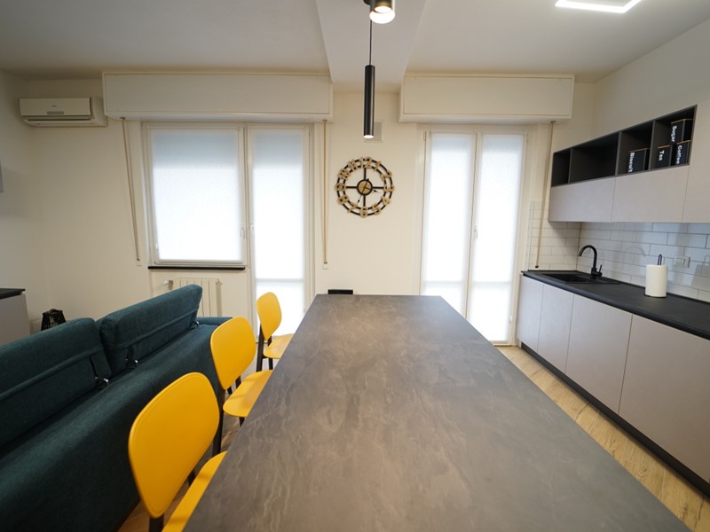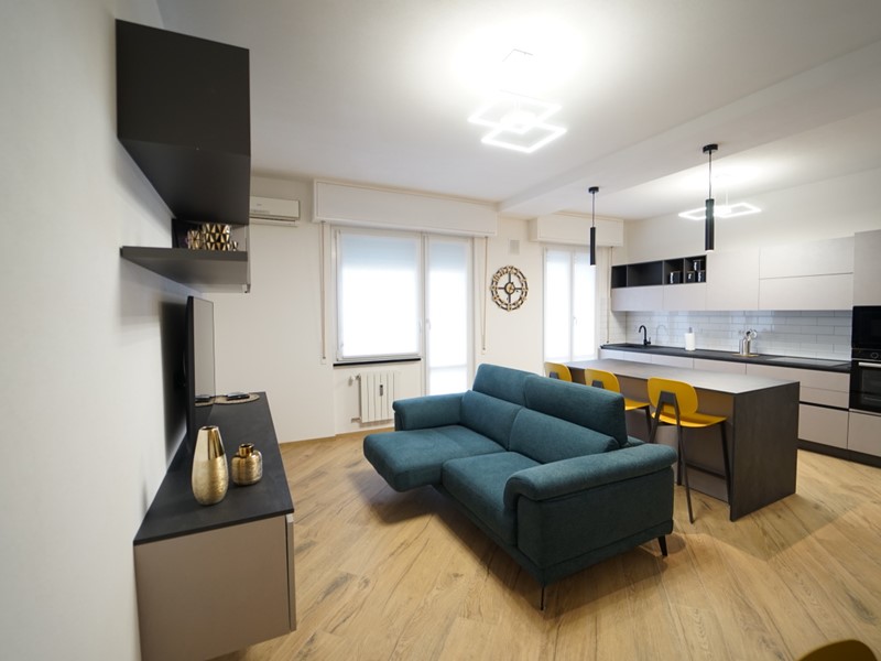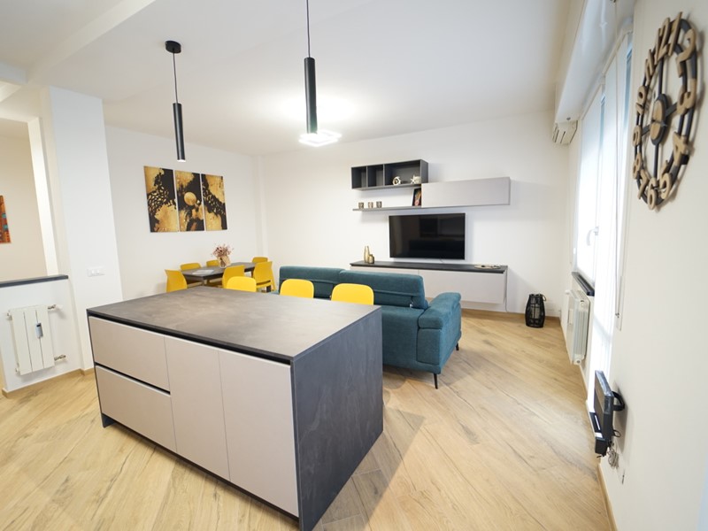 L'immobile viene locato arredato finemente, con mobilio moderno e raffinato, fornito di ogni comfort, ed così composto: ingresso, ampio soggiorno open space con cucina a vista (dotata di piano ad induzione, forno e microonde, lavastoviglie, lavatrice), due ampie camere da letto matrimoniali, comodo ripostiglio e servizio con box doccia.