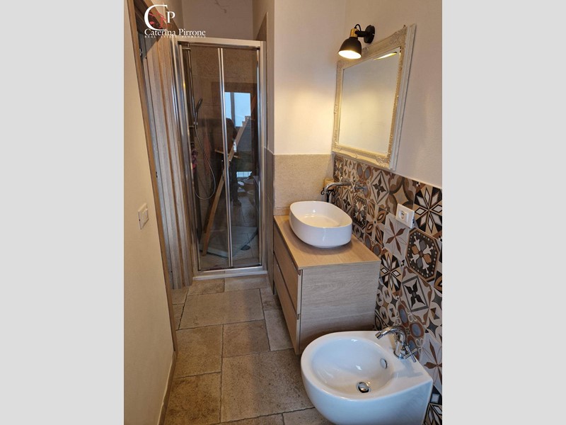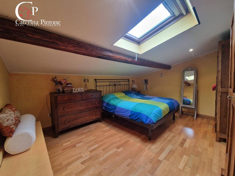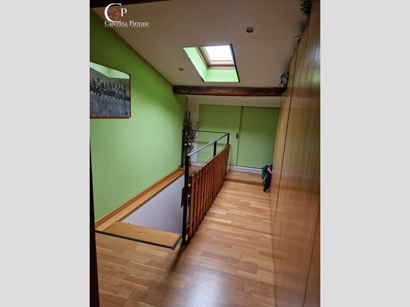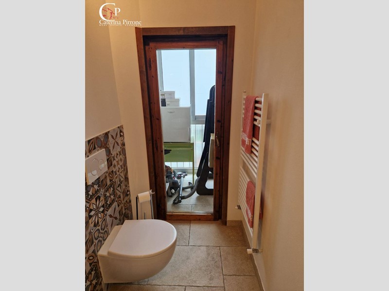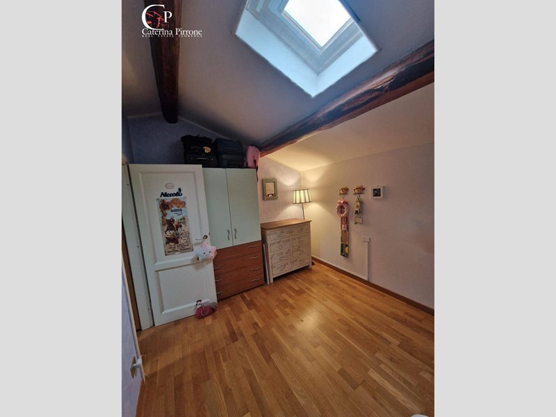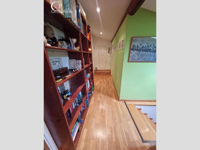 L'immobile si sviluppa su due livelli ed è così composto: al piano primo ampio ingresso, cucina abitabile aperta sul soggiorno, bagno finestrato con accesso a balconcino di servizio, ripostiglio, accesso a terrazza abitabile di mq.45 circa, soppalco uso ufficio; al piano sottotetto disimpegno con armadi a muro, camera matrimoniale, cameretta, servizio finestrato.