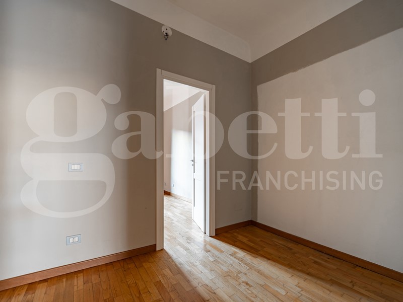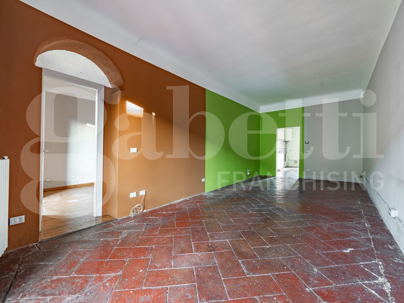 L'appartamento, attualmente composto dall'unione di due bilocali, offre una superficie complessiva di circa 97 mq e dispone di due solai di pertinenza. Gli spazi interni sono oggi organizzati in soggiorno, cucina abitabile, due camere da letto di cui una con cabina armadio e cassaforte, bagno.