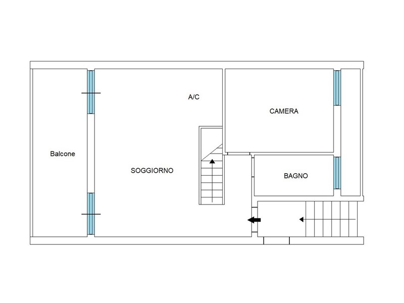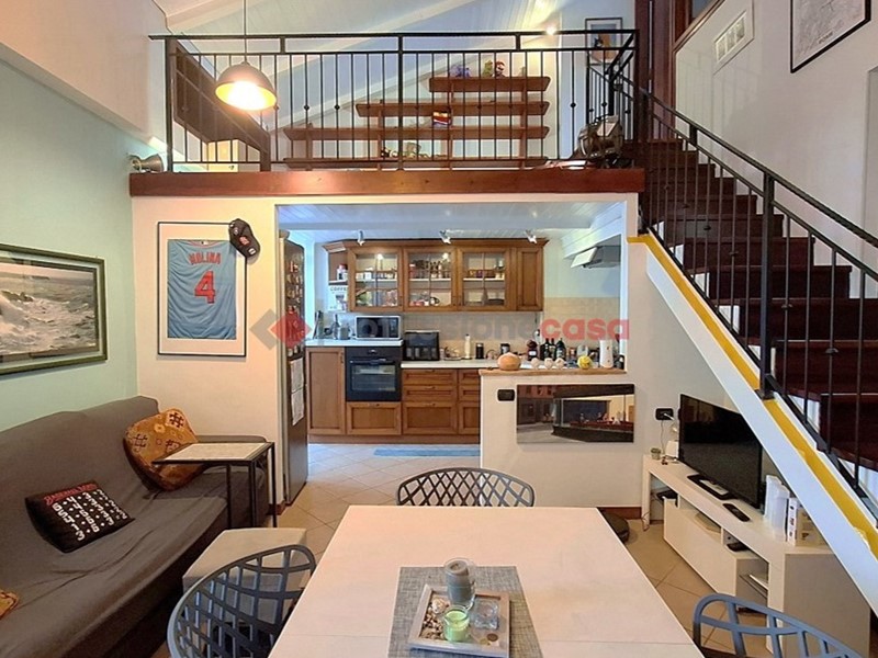 Al primo livello troviamo un accogliente ingresso, un luminoso soggiorno con angolo cottura, un bagno, una camera da letto e un balcone perfetto per godersi momenti di relax all'aria aperta con vista mare.