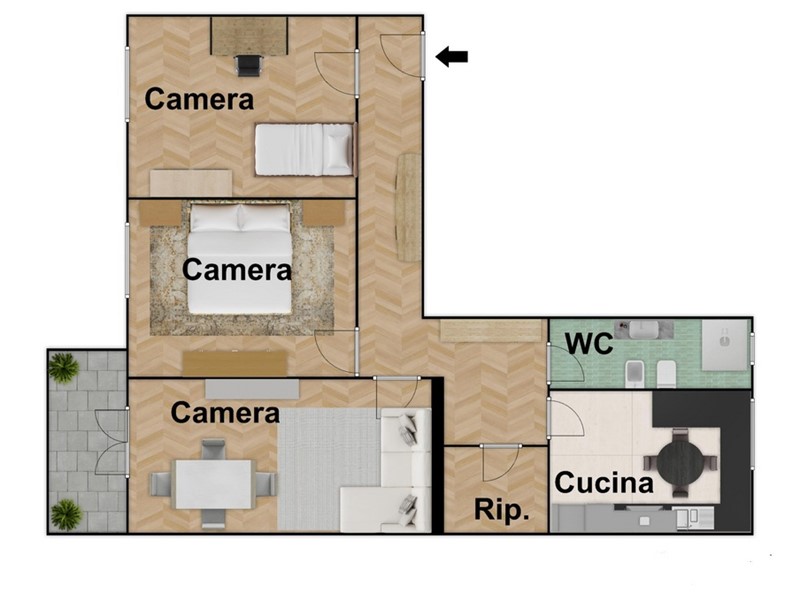 L'immobile, di circa 100 mq commerciali, si presenta luminoso, ordinato e ben distribuito, con spazi pensati per essere vissuti senza sprechi.