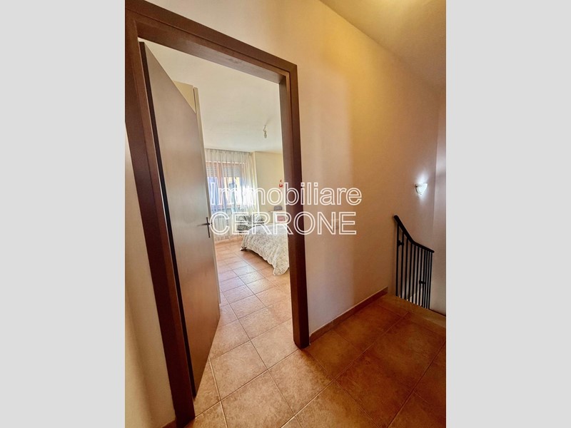 Dal soggiorno, tramite una scala in legno, si raggiunge il piano secondo, dedicato alla zona notte, che ospita una camera matrimoniale, una cameretta, un disimpegno e un bagno finestrato con box doccia.