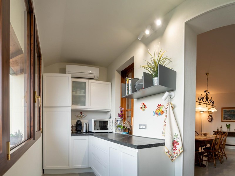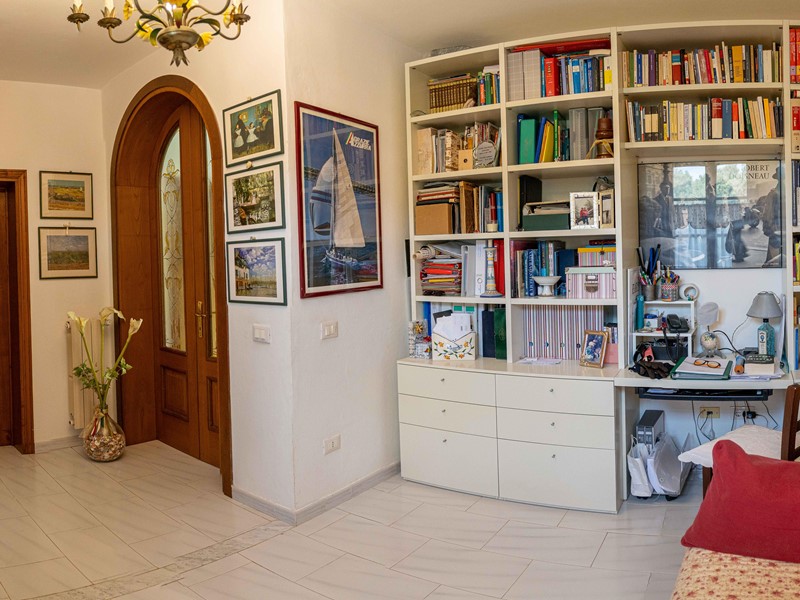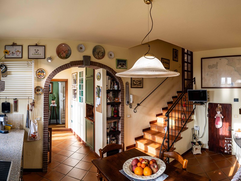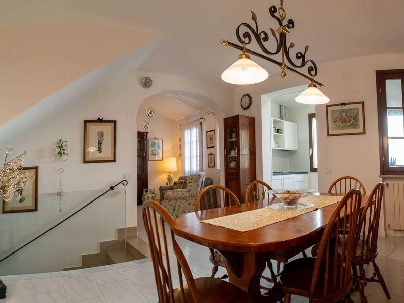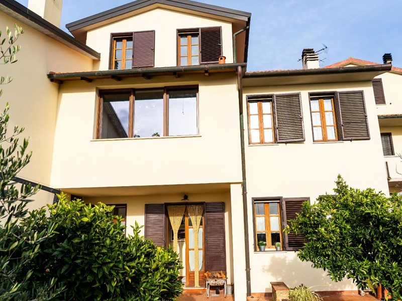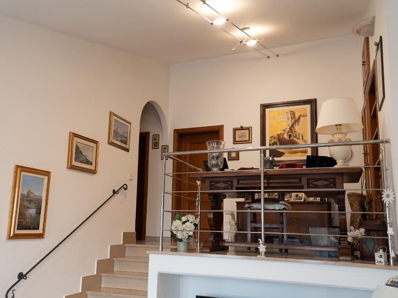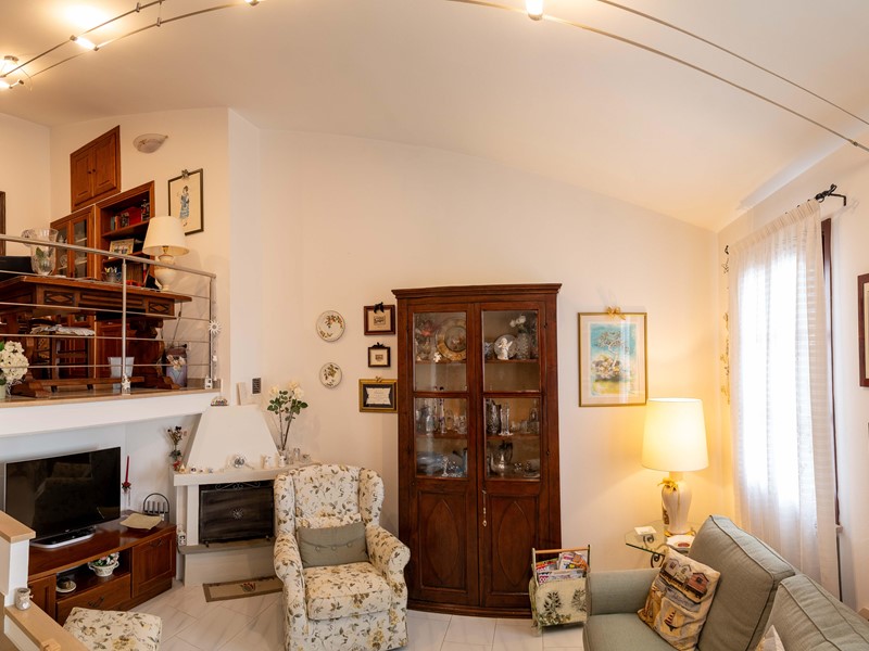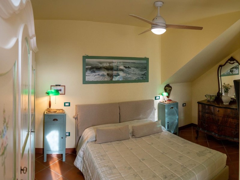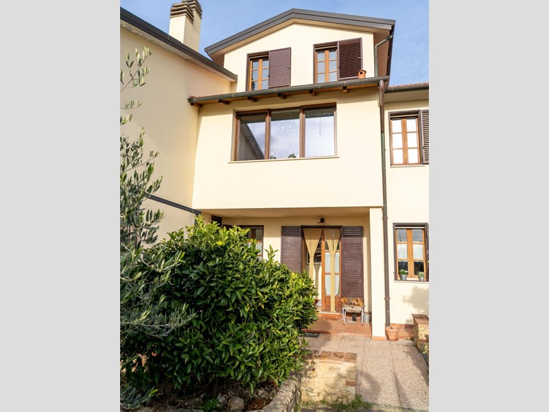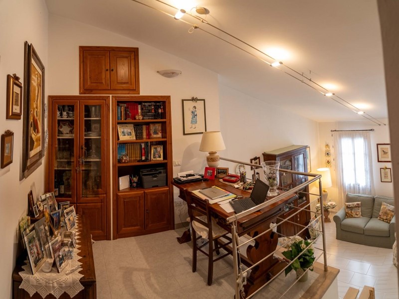 BIBBONA. In collaborazione con altra agenzia della provincia, Cinzia Amelia VIVIANI è lieta di proporre in vendita: splendido appartamento (tipologia terratetto) che si estende per 190 mq di superficie e disposto su tre livelli abitativi. Facente parte di una schiera di quattro unità immobiliari, caratterizzato un doppio ingresso indipendente (pedonale e carrabile) giungiamo all'interno dell'abitazione dove troviamo entrando sulla destra un vano adibito a studio o piccolo salottino di circa 10 mq. Salendo qualche gradino, giungiamo al piano living in openspace, dove sulla destra con un divisorio in vetro ci accoglie la zona pranzo, cucinotto (privo di piano cottura con fuochi ma con induzione) con un'ampia superficie finestrata da cui possiamo apprezzare una stupenda vista mare; sulla sinistra rispetto alla scala il salotto con un “caloroso” camino; la superficie totale di questo livello si sviluppa per oltre 45 mq, saliamo ancora di qualche gradino e troviamo nella zona notte, uno spazio anch’esso adibito a studio, due camere da letto e il bagno. Completa l’ultimo livello mansardato con tetto coibentato (altezza da ml 2,40 a ml 3,00) dove in 18 mq trova posto la terza camera (matrimoniale). Dal piano terra (ingresso) invece, da scala interna, scendiamo al livello inferiore, dove oltre ad un bagno, abbiamo taverna rustica e in stile toscano di circa 20 mq, con altro camino, e un vano ora adibito a camera. Completano la proprietà due lotti di giardino di circa 100mq (totali) suddivisi in due parti (anteriore e tergale). Quella sul retro ha una migliore esposizione solare, ha più verde (alberi da frutto) e spazi attrezzati per relax (barbecue in muratura, tavolo, ombrellone ecc.) e porticato. Dal giardino anteriore si accede al posto auto scoperto e alla rimessa di 18 mq, munita di serranda basculante, e collegata internamente all'abitazione. Abitabilità nel 1992, dal 2006 gli attuali proprietari. Le facciate e cornicioni (protetti con scossoline in metallo) del tetto ripristinati nel 2024 ; infissi interni in legno di iroco e PVC termici con doppi vetri. Presenti condizionatori. Addolcitore e caldaia a condensazione nuovi. Impianto elettrico partizionato. Termo camino. Nessuna forma di Condominio. Ottimo stato di manutenzione, cura dei particolari, possibilità di vivere in totale autonomia, ambienti accoglienti ed eleganti anche per il tipo degli arredi presenti.