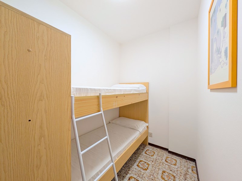 L'unità immobiliare oggetto della presente proposta è posizionata al terzo piano in orientamento ovest e si compone di zona giorno con divano letto doppio, angolo cottura, balcone da mq. 5,00 orientato a ovest, nicchia con letto a castello, camera con letto matrimoniale, bagno con doccia.