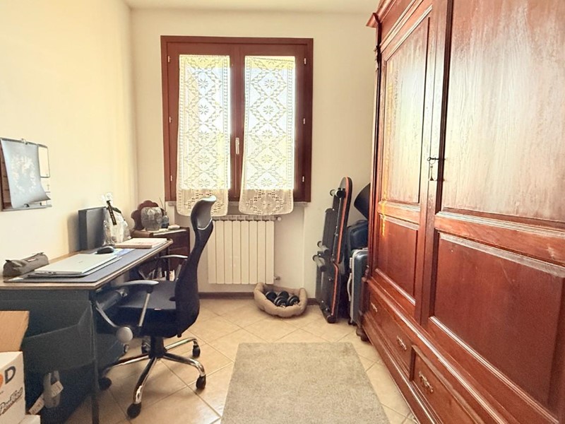 La zona notte ospita una generosa camera matrimoniale, dotata di porta finestra con affaccio su un grazioso terrazzo privato, ideale per momenti di relax. La seconda camera, attualmente adibita a studio, si presta perfettamente come cameretta singola ed è caratterizzata da un’ottima luminosità grazie alla presenza di un’ampia finestra. Completa la proprietà un pratico ripostiglio, ideale come zona lavanderia o spazio di servizio.