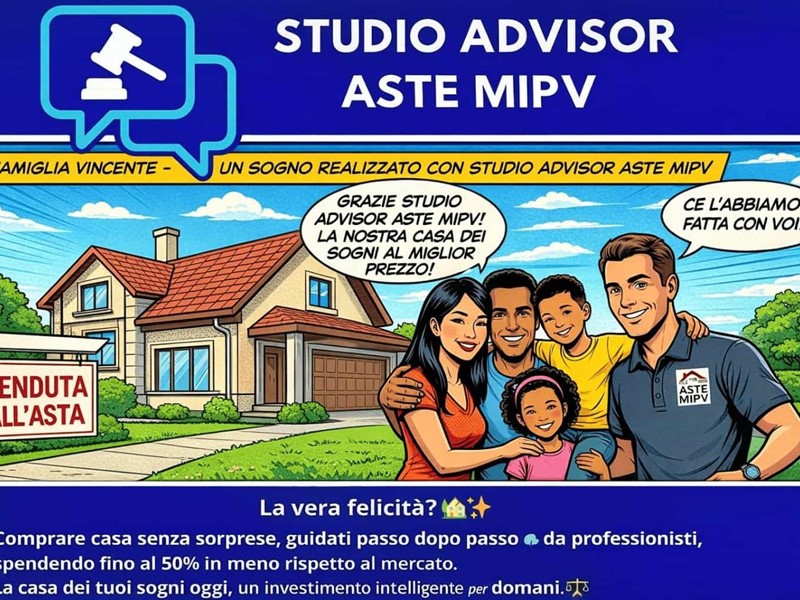 Questo annuncio è stato redatto da Studio Advisor Aste MiPv sulla base della documentazione ufficiale di vendita. Le informazioni qui riportate non sostituiscono la pubblicità legale e potrebbero contenere imprecisioni o variazioni rispetto agli atti ufficiali. Studio Advisor Aste MiPv declina ogni responsabilità per errori, omissioni o modifiche intervenute successivamente alla pubblicazione.