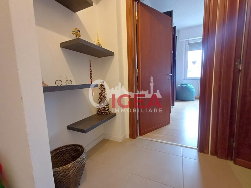 L' appartamento internamente è così composto: un ampio ingresso che conduce alla cucina abitabile con collegamento diretto al balcone, un comodo ripostiglio dove riporre gli oggetti e un enorme salotto, accogliente e luminosissimo, anche questo locale con ingresso diretto al balcone, il quale dà continuità con la cucina e collega esternamente la zona giorno. Un comodo corridoio ci conduce alla zona notte formata da una bellissima camera matrimoniale, una cameretta singola e al bagno finestrato, con box doccia.