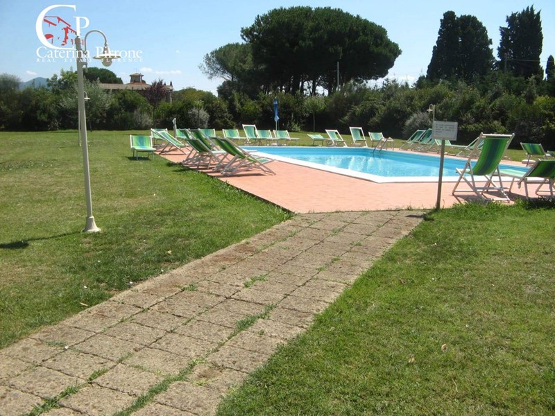 Giardino su 3 lati, loggia, 2 posti auto scoperti, piscina condominiale.