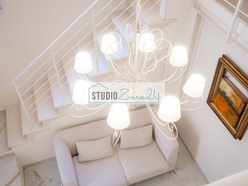 Il bagno elegante, con antibagno attrezzato a lavanderia, garantisce comfort e praticità. La zona notte soppalcata è un vero gioiello, con un letto matrimoniale e un letto singolo. L'appartamento è dotato di aria condizionata e riscaldamento a pompa di calore, assicurando un clima perfetto tutto l'anno.