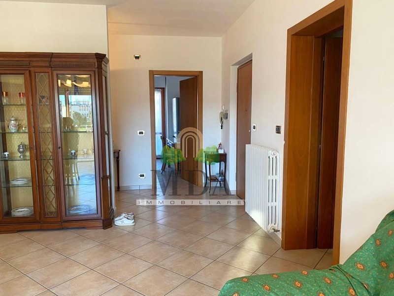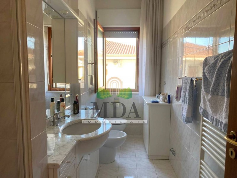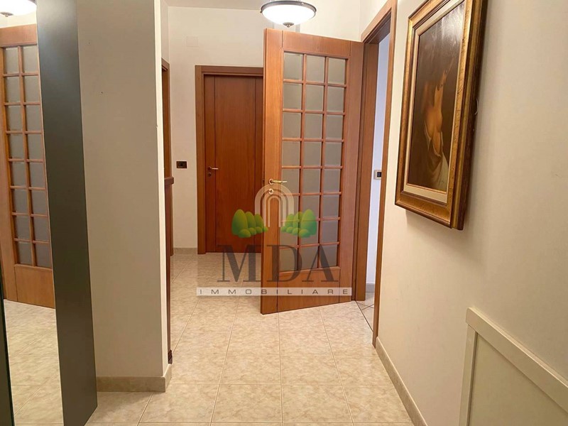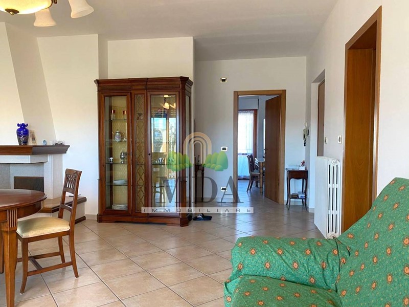 L'appartamento, 125 mq. circa, si trova al primo piano ed è composto da: ampio ingresso, soggiorno con camino, cucina abitabile, disimpegno, tre camere matrimoniali, ampio ripostiglio, due bagni finestrati di cui uno con vasca e uno con doccia.