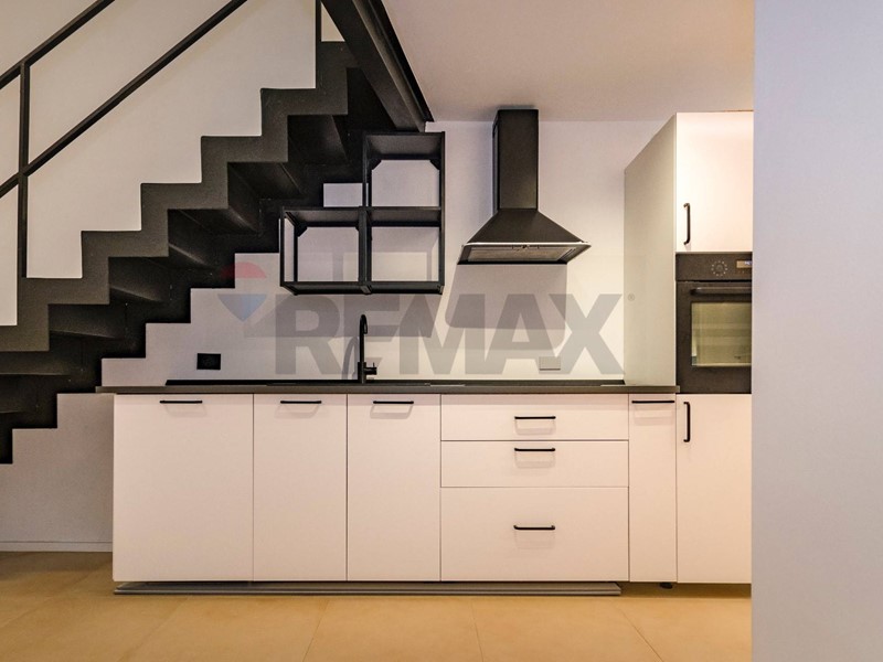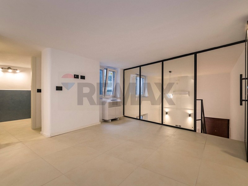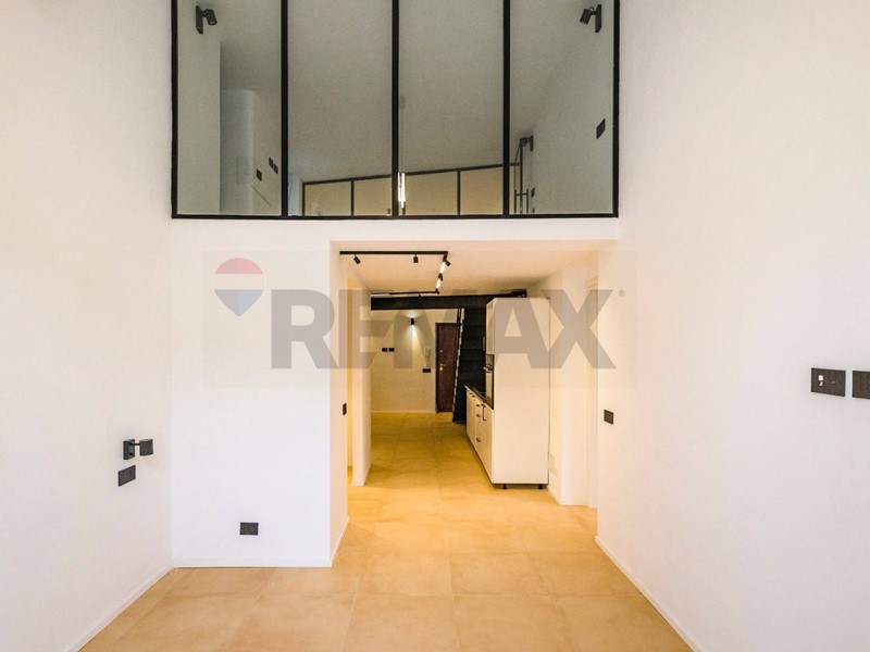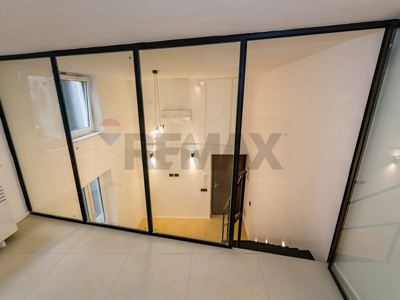 Le importanti altezze dei soffitti hanno consentito la realizzazione di un elegante soppalco, affacciato sulla zona living tramite ampie vetrate che valorizzano ulteriormente la luminosità e il carattere contemporaneo dellabitazione. Il soppalco è dotato di bagno dedicato, rendendolo perfetto sia come seconda camera da letto sia come studio o spazio multifunzionale.