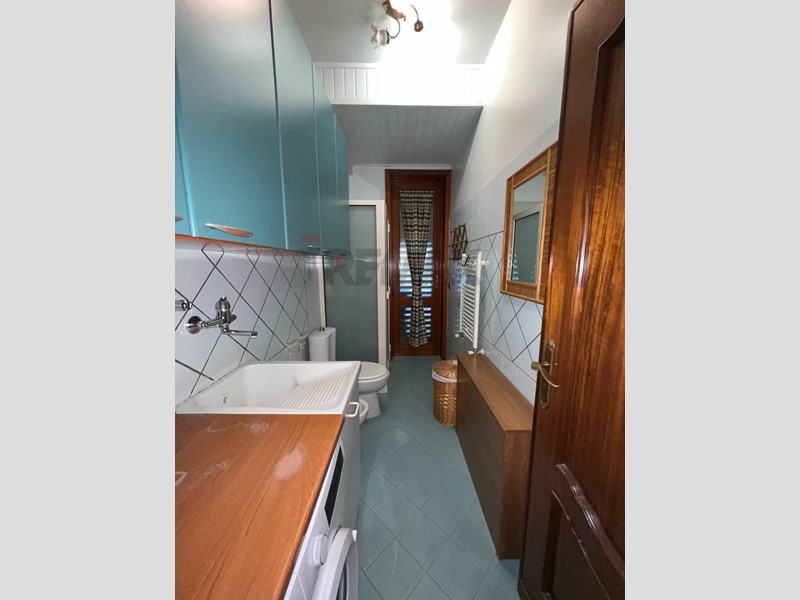 Il corridoio disimpegna sul lato sinistro una cucina abitabile in muratura , bagno principale con vasca idromassaggio, lavanderia con secondo servizio ed una camera da letto, tutti aventi esposizione sul lato interno.