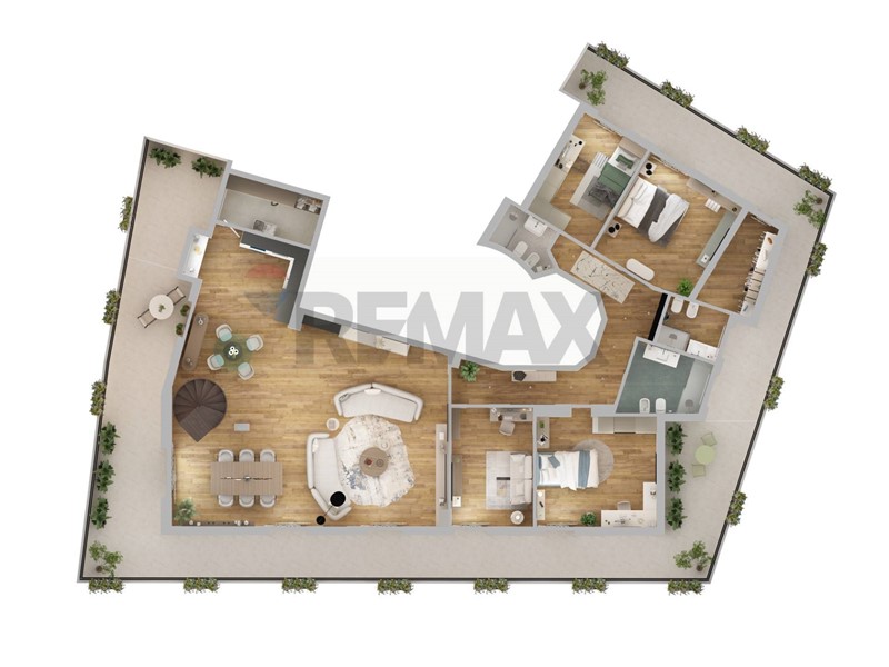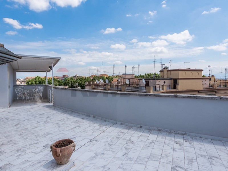 L'appartamento, sito al quinto e sesto piano sviluppa una superficie interna di circa 250 mq, con degli esterni da sogno che abbracciano perimetralmente l'intera abitazione.