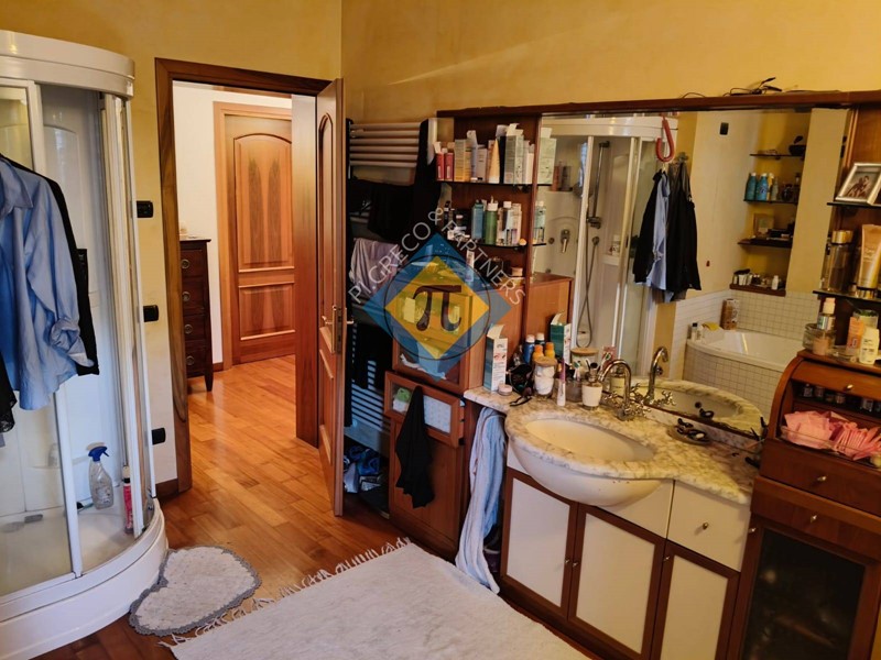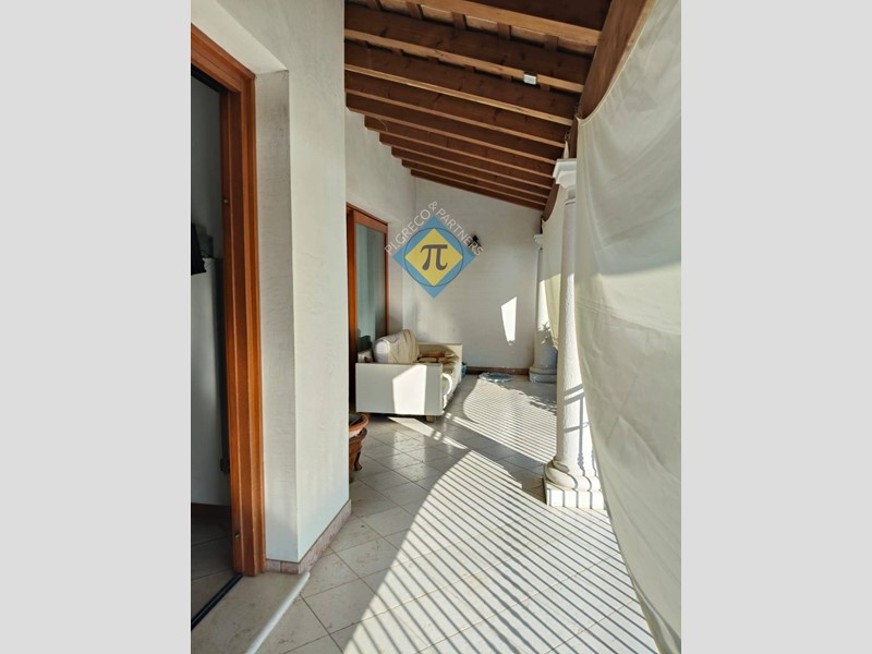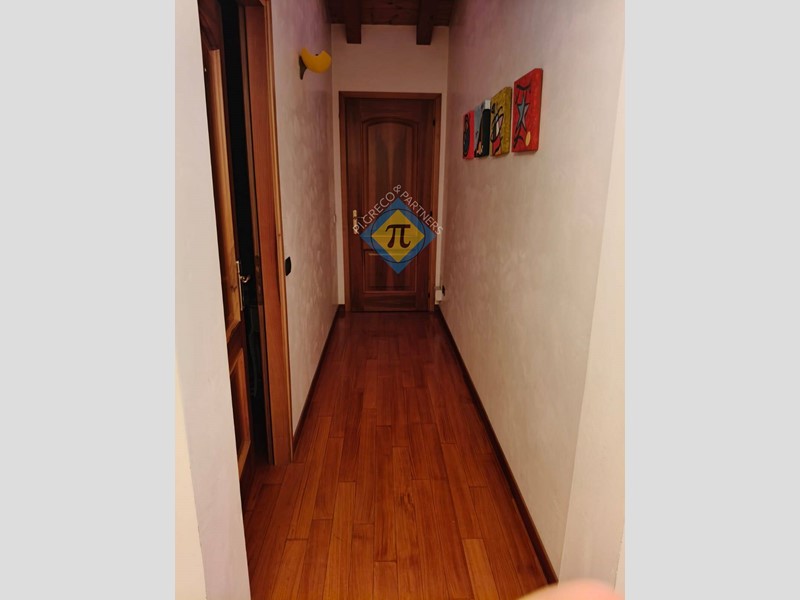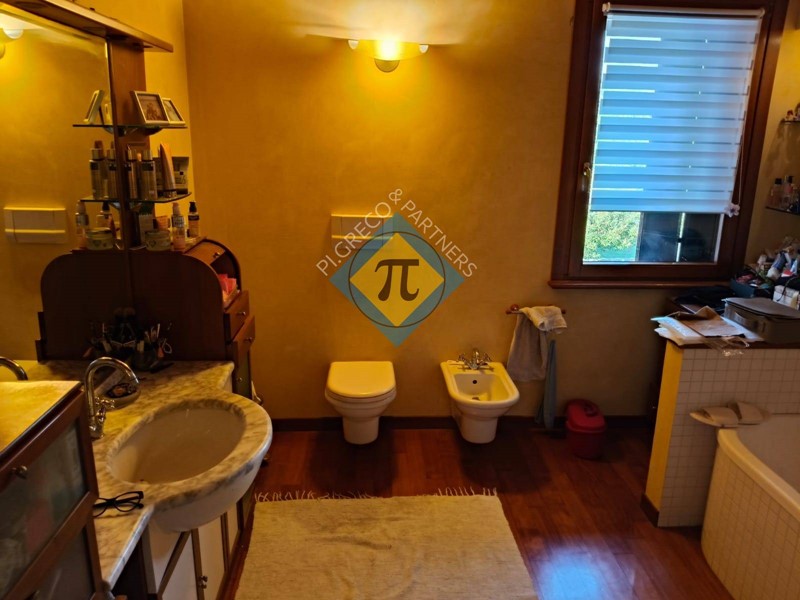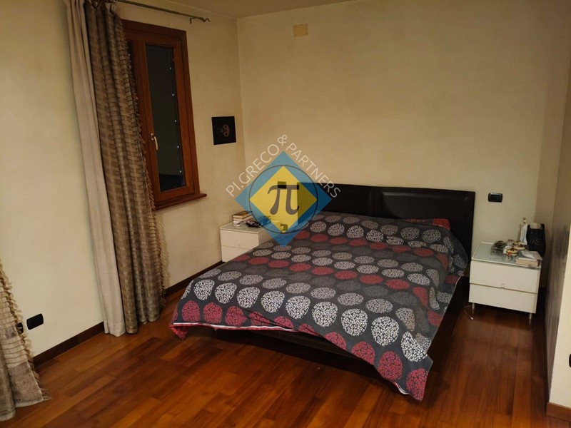 In un contesto tranquillo e riservato a 5 minuti a piedi dal centro proponiamo in vendita importante appartamento al primo piano in villa bifamigliare del 2000. Allappartamento al piano primo si accede con scala esterna che immette al porticato di ingresso. Limmobile, come si può facilmente evincere dalle foto, ha finiture di pregio ed è stato realizzato con materiali di prima qualità ed è composto da una entrata aperta direttamente sullimportante soggiorno di 37mq, segue quindi una cucina separata abitabilissima e dotata di camino funzionante; i due locali hanno soffitto travato a vista in legno e si affacciano su un generoso portico coperto ben abitabile. Il reparto notte è costituito da una grande camera matrimoniale, da altre due camere singole di generosa superficie e da due bagni finestrati. A servizio dellappartamento vi sono inoltre due zone sottotetto, di altezza utile, oggi adibite a magazzino, lavanderia, stireria e locale caldaia. Sono di pertinenza allappartamento un garage doppio ed alcuni locali di servizio al piano interrato, inoltre, in fase di trattativa è possibile valutare lassegnazione di una porzione di scoperto esclusivo poiché il fabbricato insiste su un ampio lotto di pertinenza di oltre 2.200 mq. adibito a verde con alberature di pregio. Che aspettate quindi, contattateci per una visita, per accertarvi di persona della opportunità. Inoltre il team dello Studio Immobiliare PI.GRECO è disponibile alla valutazione gratuita dei vostri immobili. Chiamateci per un sopralluogo ed una veloce e felice conclusione della trattativa. Studio Immobiliare PI.GRECO un servizio concreto.