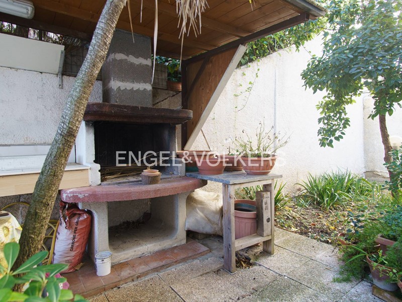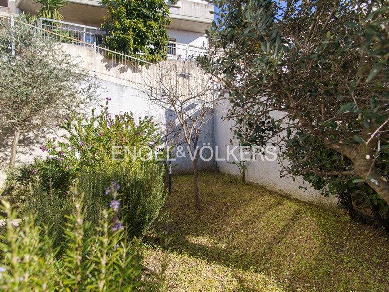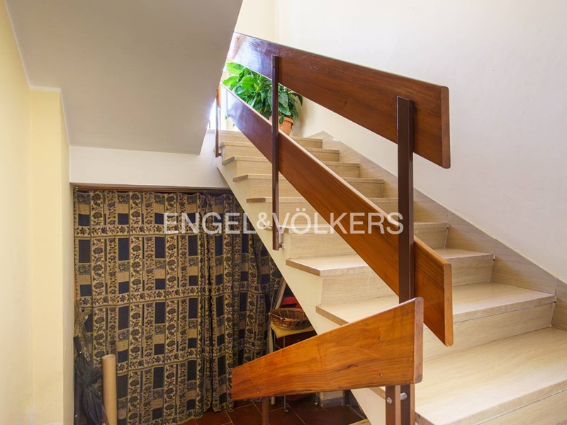 Il piano terra ospita lappartamento principale, composto da ampia sala, cucina separata, tre camere da letto, due bagni e balcone perimetrale. In alcuni ambienti è presente parquet galleggiante, posato circa 13 anni fa, mentre cucina e soggiorno sono impreziositi da superfici in marmo con eleganti venature dorate, che conferiscono carattere e luminosità agli spazi.