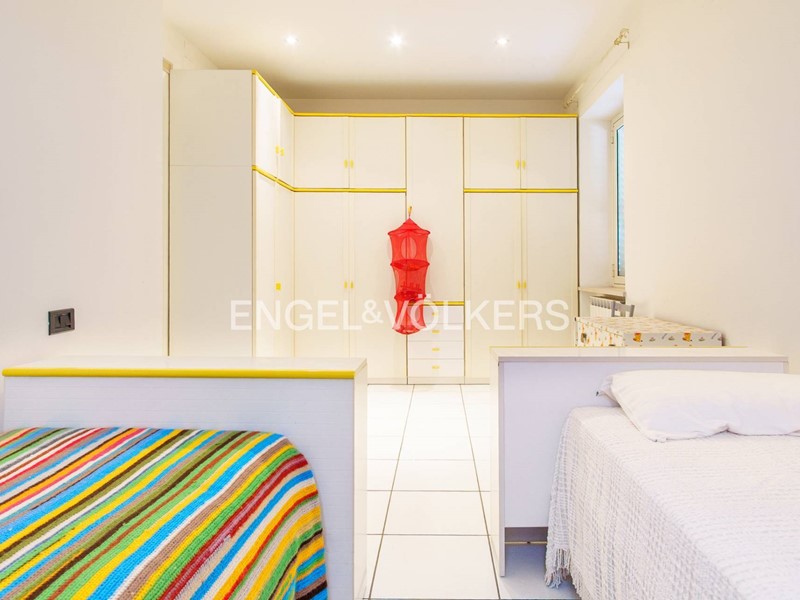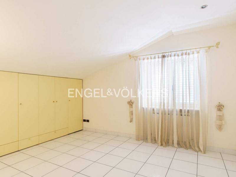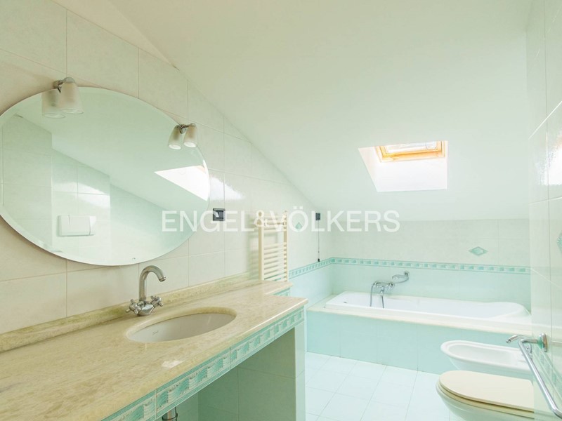 Il piano primo mansardato accoglie un secondo appartamento, composto da ampia zona giorno, cucina, due camere da letto, due bagni e terrazzo panoramico.