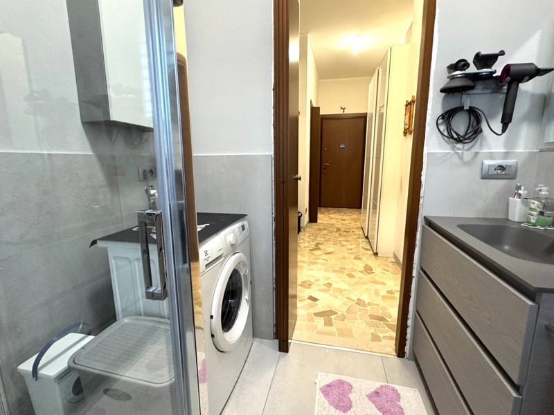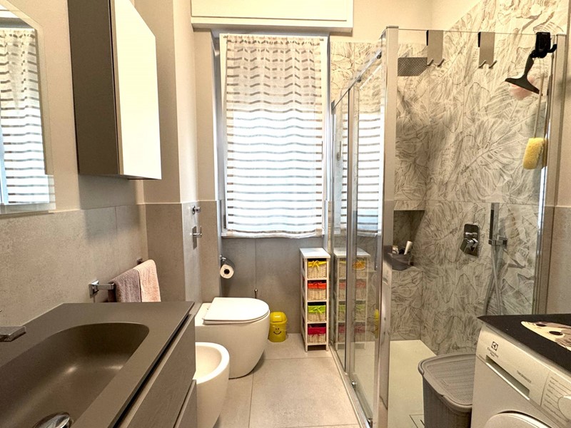 Questo immobile, ristrutturato da pochi anni, è posto al quinto piano di un condomino di sei piani ed ha una luminosissima tripla esposizione, ovviamente servito da ascensore. Composto da ingresso e disimpegno, cucina abitabile, ampio soggiorno, ampia camera matrimoniale, bagno finestrato, due comodi balconi. Ampia metratura dell'appartamento ben distribuita, dispone anche della pertinenza di una grande cantina ma soprattutto di un ampio e comodo box auto dove si può trovare lo spazio, oltre alla propria macchina e la scaffalatura, per ricoverare anche biciclette o motorini.