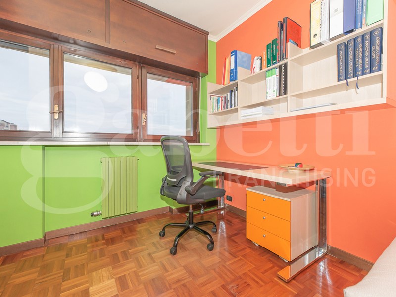 La Gabetti di Rivoli propone in vendita in zona comoda ai servizi e con molti spazi verdi, quadrilocale al quinto piano di uno stabile costruito negli anni '90. L'immobile è così composto :