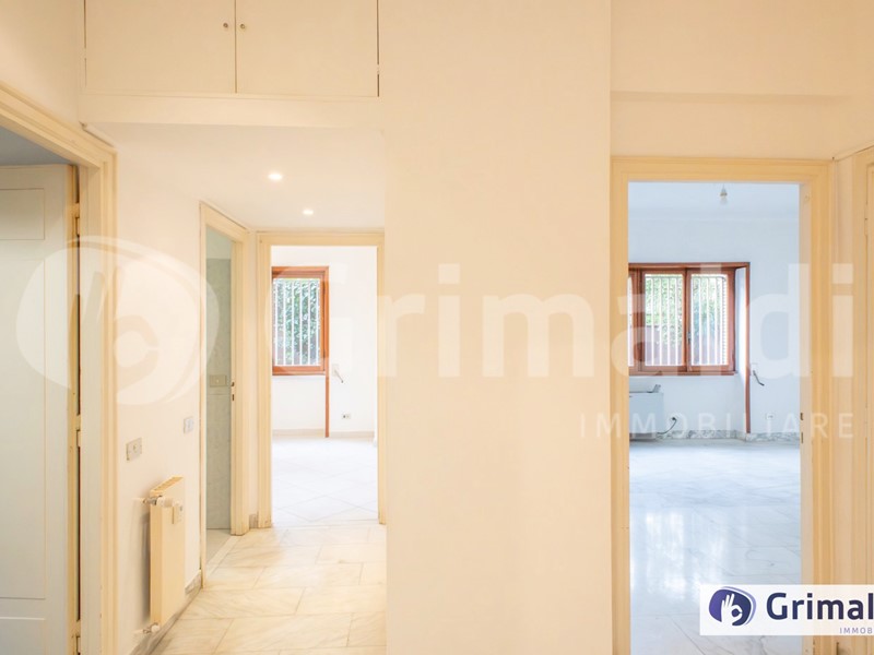 VG11/26 Roma - Eur - Torrino - Serafico In uno dei tratti più richiesti e residenziali di Viale del Serafico, all' interno di un contesto signorile e riservato, proponiamo in vendita un appartamento posto al piano terra di un elegante stabile di 8 piani, ben curato. L' accesso all' ingresso del palazzo avviene tramite 8 gradini; lo stabile è tuttavia dotato di sedia montascale, che consente un accesso agevolato e garantisce una maggiore fruibilità degli spazi comuni. L' immobile si distingue per la razionale distribuzione degli spazi. L' ingresso introduce a un ampio salone con pavimentazione in marmo, elemento di pregio che conferisce eleganza e rappresentatività all' ambiente. La zona giorno è completata da una cucina abitabile, mentre la zona notte comprende due grandi camere da letto, un bagno finestrato e un comodo ripostiglio. La doppia esposizione assicura ottima luminosità e una piacevole ventilazione naturale durante tutto l' arco della giornata. Completa la proprietà un posto auto coperto, plus particolarmente apprezzato nella zona.