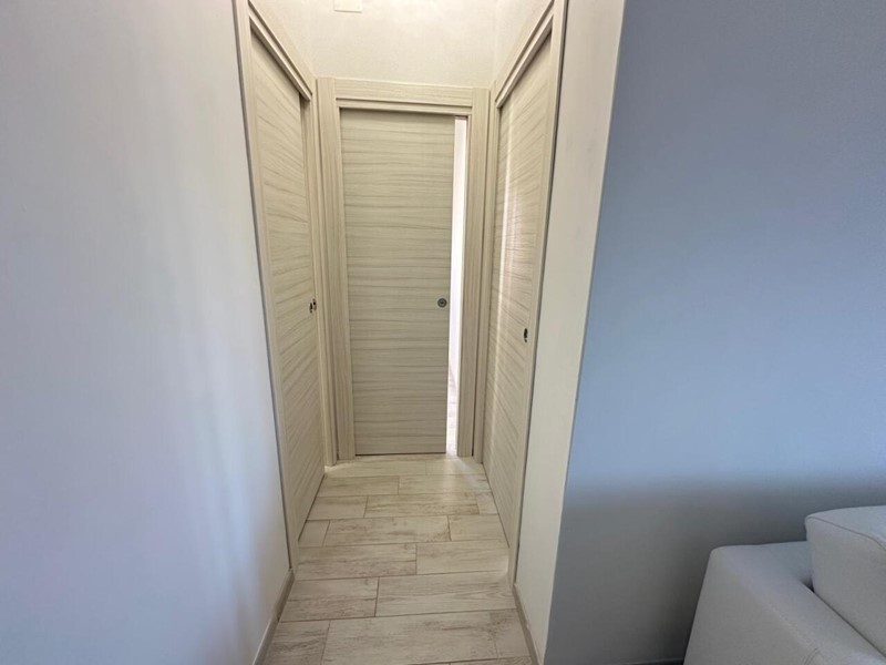 L'ingresso accogliente conduce a una cucina moderna e funzionale, completata da un luminoso soggiorno che si apre su un balcone, offrendo una vista incantevole su cui godere delle brezze marine e dei tramonti. Le due accoglienti camere da letto, una matrimoniale e una singola, offrono spazio sufficiente per ospitare comodamente la famiglia o gli ospiti. Il bagno, dotato di una doccia spaziosa e una finestra che garantisce una luminosità naturale, assicura praticità e comfort.