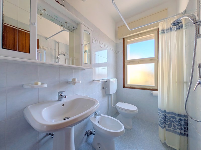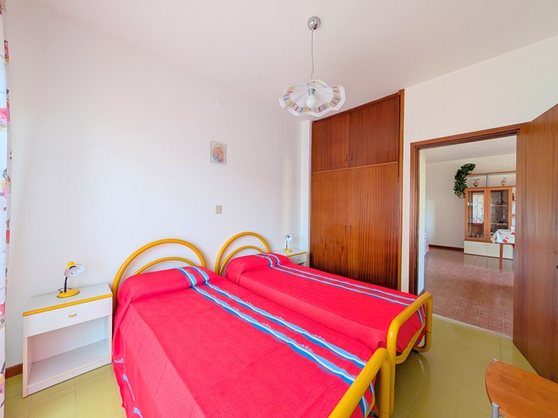L'unità immobiliare oggetto della presente proposta è posizionata al secondo piano in orientamento sud/est e si compone di zona giorno con divano letto doppio, angolo cottura rinnovato e antistante terrazzo da 5,00 m² con vista mare esposto a est, disimpegno, camera con letto matrimoniale, camera con due letti singoli e terrazzo da 5,00 m² orientato a est con vista mare, bagno finestrato con doccia, posto auto numerato e coperto da pensilina.
