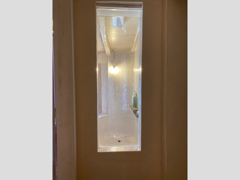 E’ una porta a vetri che separa il viale esterno con l’abitazione ed un ingresso accogliente completo di bagno, è stato pensato per poter lasciare scarpe e giacche prima di salire nella zona living.