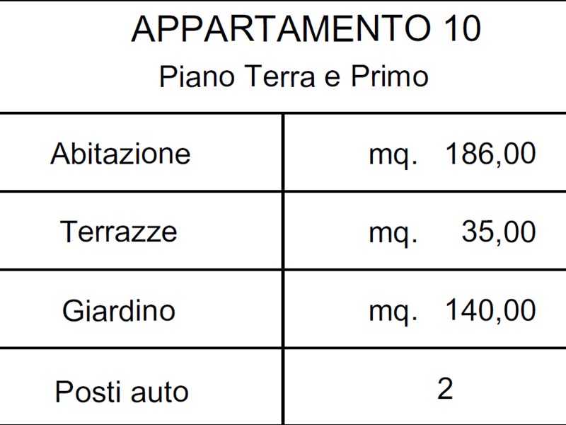 Piano primo : zona living, cucina abitabile , due camere da letto, tre bagni e ripostiglio ed un giardino/resede di 140mq.