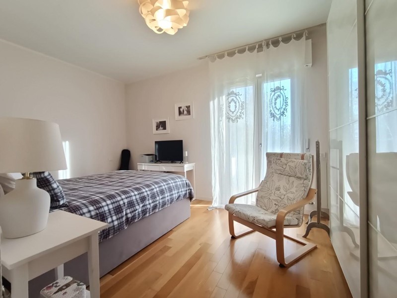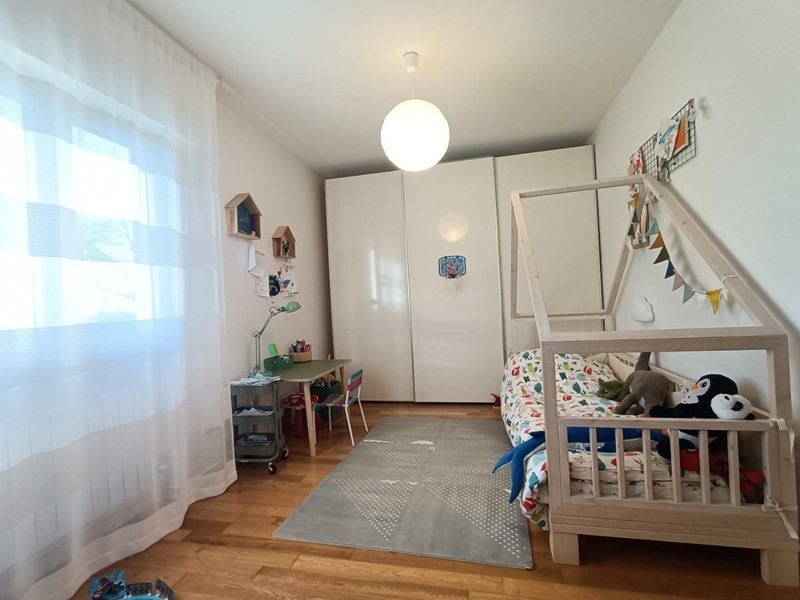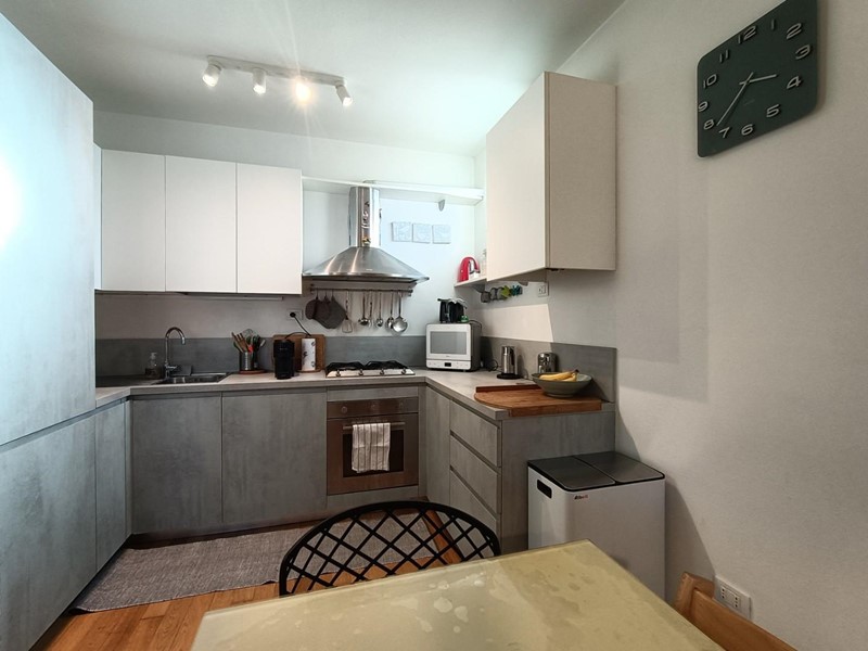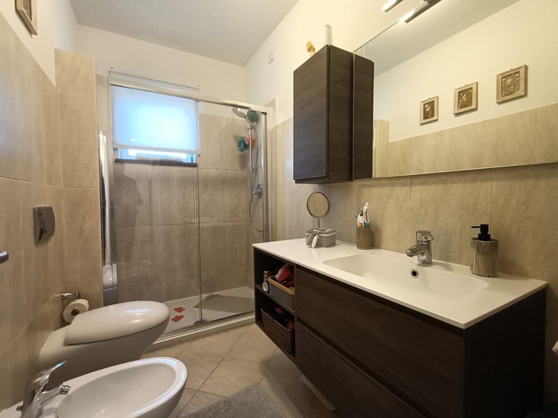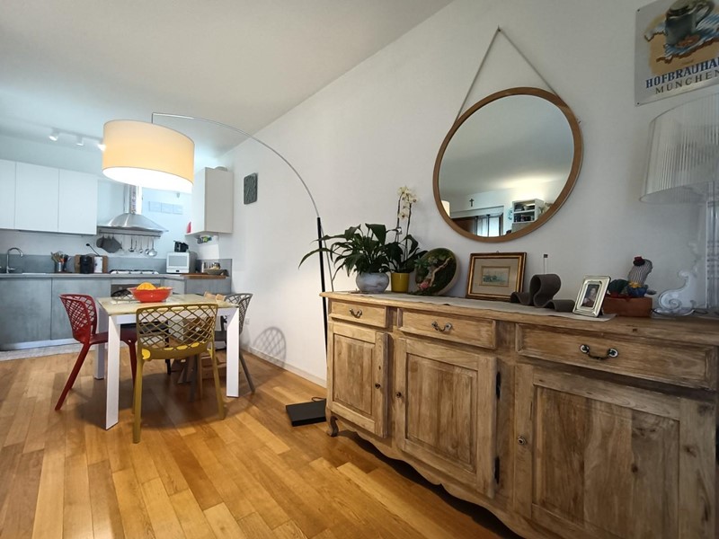 Grazioso appartamento, ubicato al piano secondo di un piccolo condominio di sole tre unità immobiliari, composto da ingresso in ampio soggiorno con cucina a vista e terrazzo, disimpegno notte con armadio a muro, bagno con finestra e due camere matrimoniali di cui una con terrazzo. Completa la proprietà, al piano terra sul retro del fabbricato condominiale, un comodo garage di 24 metri quadri, dotato di luce e acqua con antistante un giardino di circa 275 metri quadrati. L'abitazione è stata completamente ristrutturata nel 2010, bagno, cucina, pavimenti in parquet, infissi in pvc con vetro camera, condizionatore nella zona giorno, termo autonomo a metano.