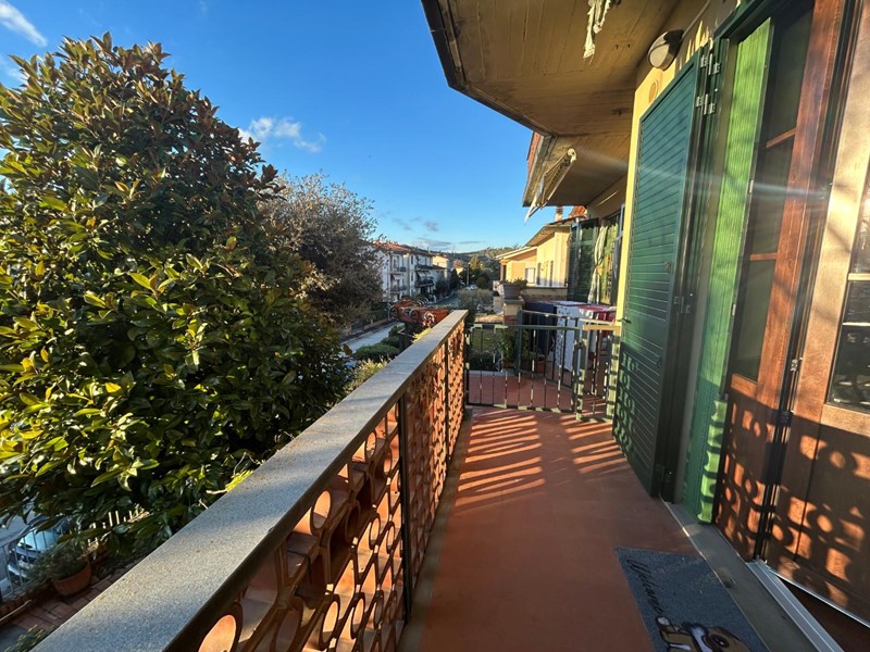 Sovigliana, in strada tranquilla, riservata e defilata dal trafico, a pochi passi da tutti i principali servizi, luminoso appartamento con ingresso indipendente posto al primo piano. L'immobile fa parte di un piccolo e curato fabbricato di sole tre unità abitative, tutte con accesso da un resede comune ben mantenuto e impreziosito dal verde, che dona un piacevole senso di privacy e ordine. Tramite scala esterna privata, si accede al primo terrazzo abitabile e all'ingresso dell'abitazione. All'interno si trova una ampia zona soggiorno-cucina, particolarmente luminosa grazie all'ottima esposizione, disimpegno, camera singola/studio, camera matrimoniale con accesso al secondo terrazzo, bagno finestrato con doccia, e comodo ripostiglio/lavanderia.